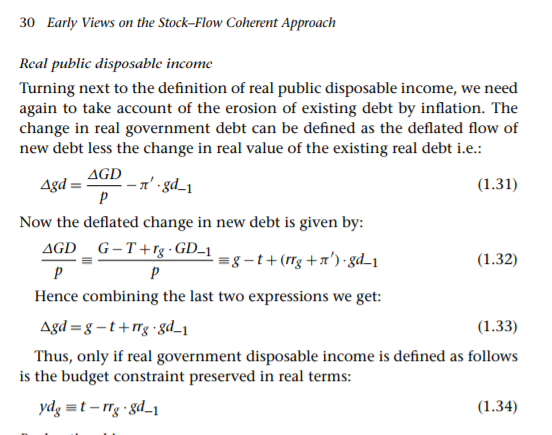 But to a first approximation you could simplify and bring real holding gains into real income. I have simplified quite a bit and these are quite challenging things, so I refer you to Wynne Godley and Marc Lavoie’s (G&L)’s book Monetary Economics.