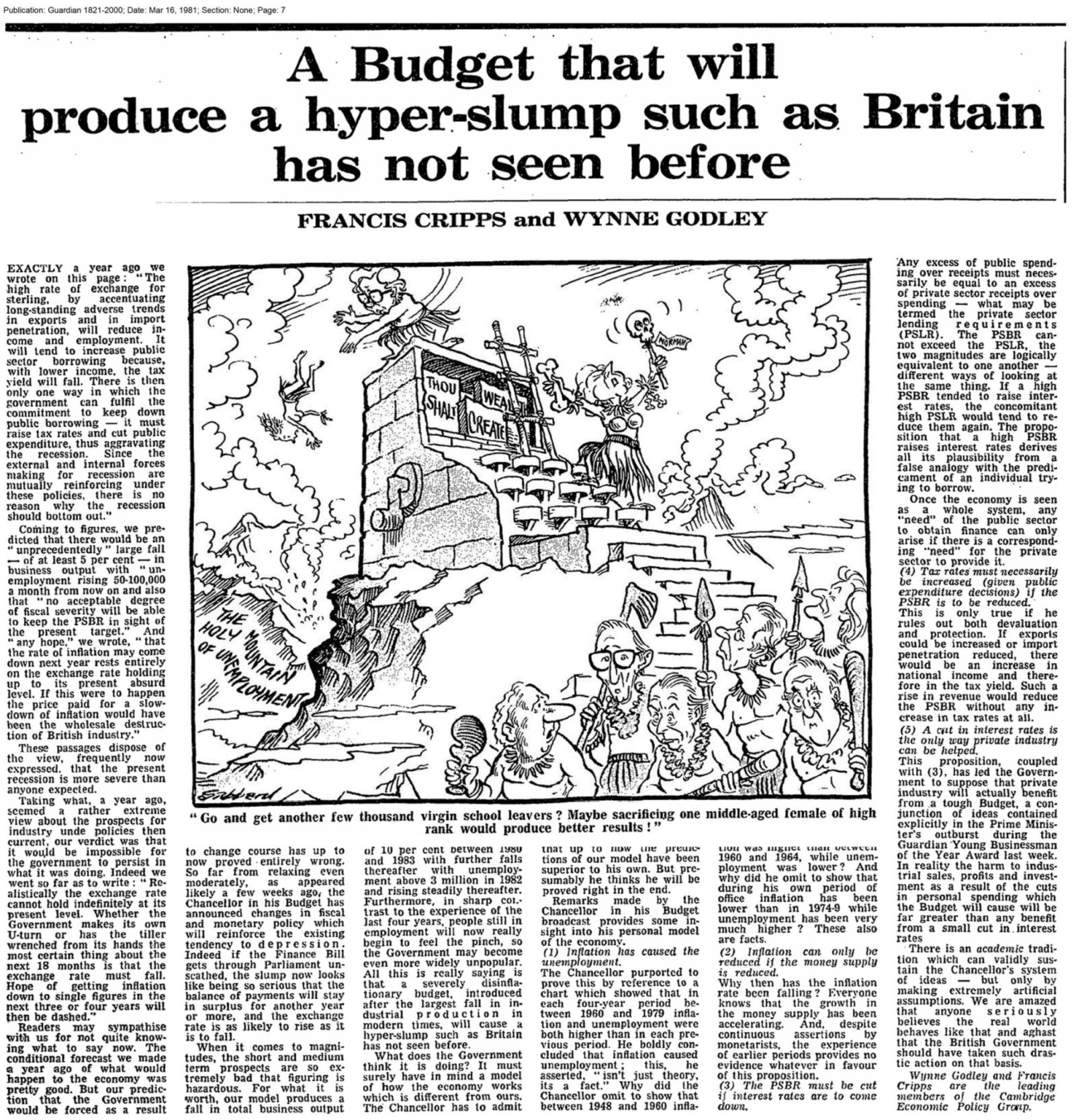 Thatcher’s bluff was caught very early by Godley. The huge rise in unemployment (to 3 million) was predicted first by Wynne Godley himself in 1979.